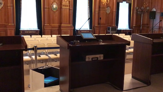 使用しない場合は邪魔にならないよう最短1mまで縮めるられます。取分け、多くの方がスピーチを行う際には、設定変更がリモコンで調整できるため、スマートな進行に役立ちます。